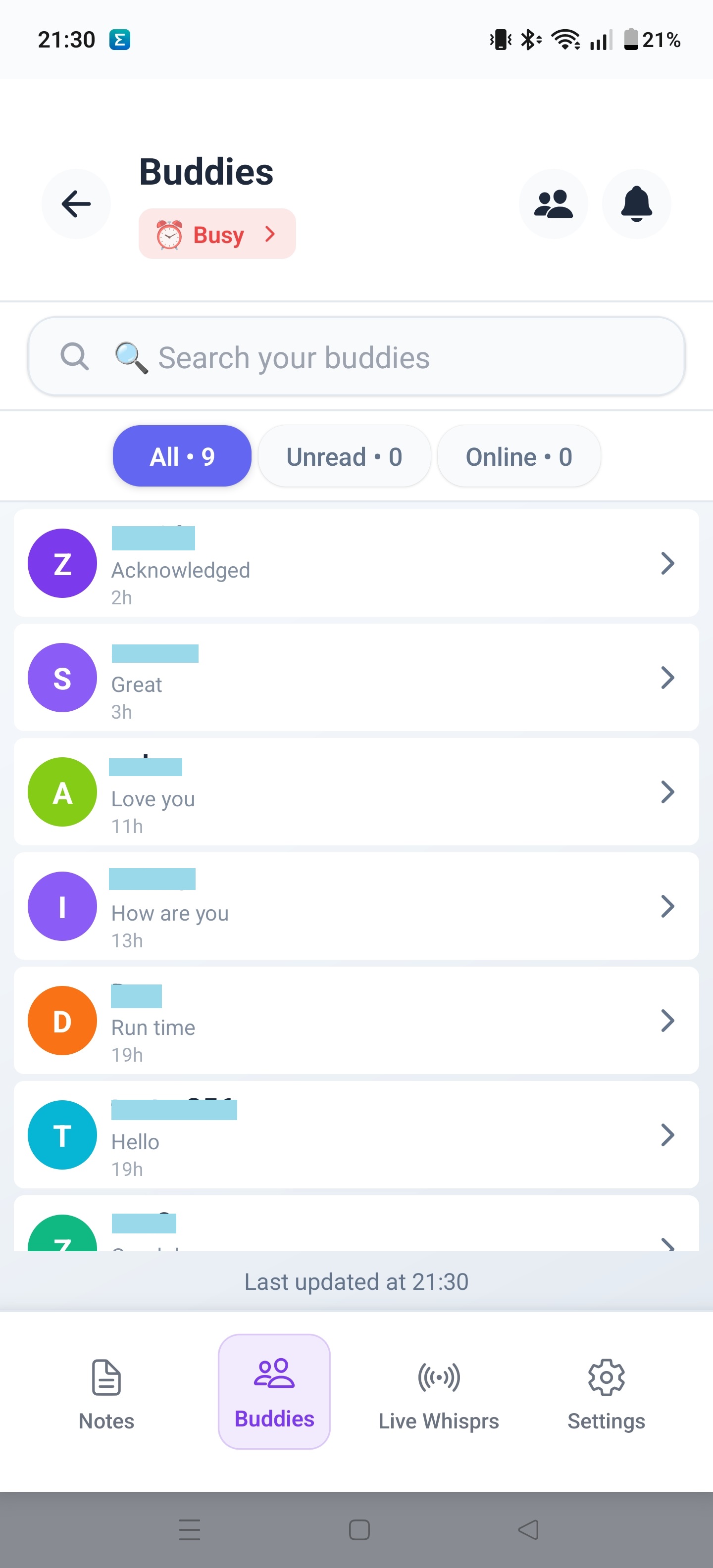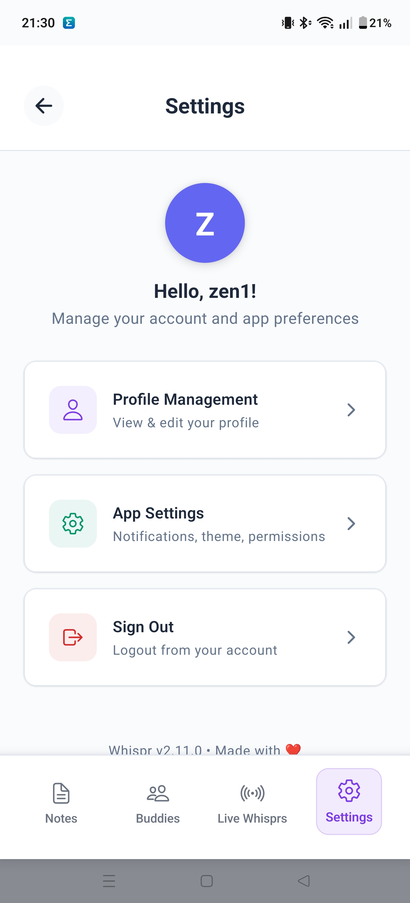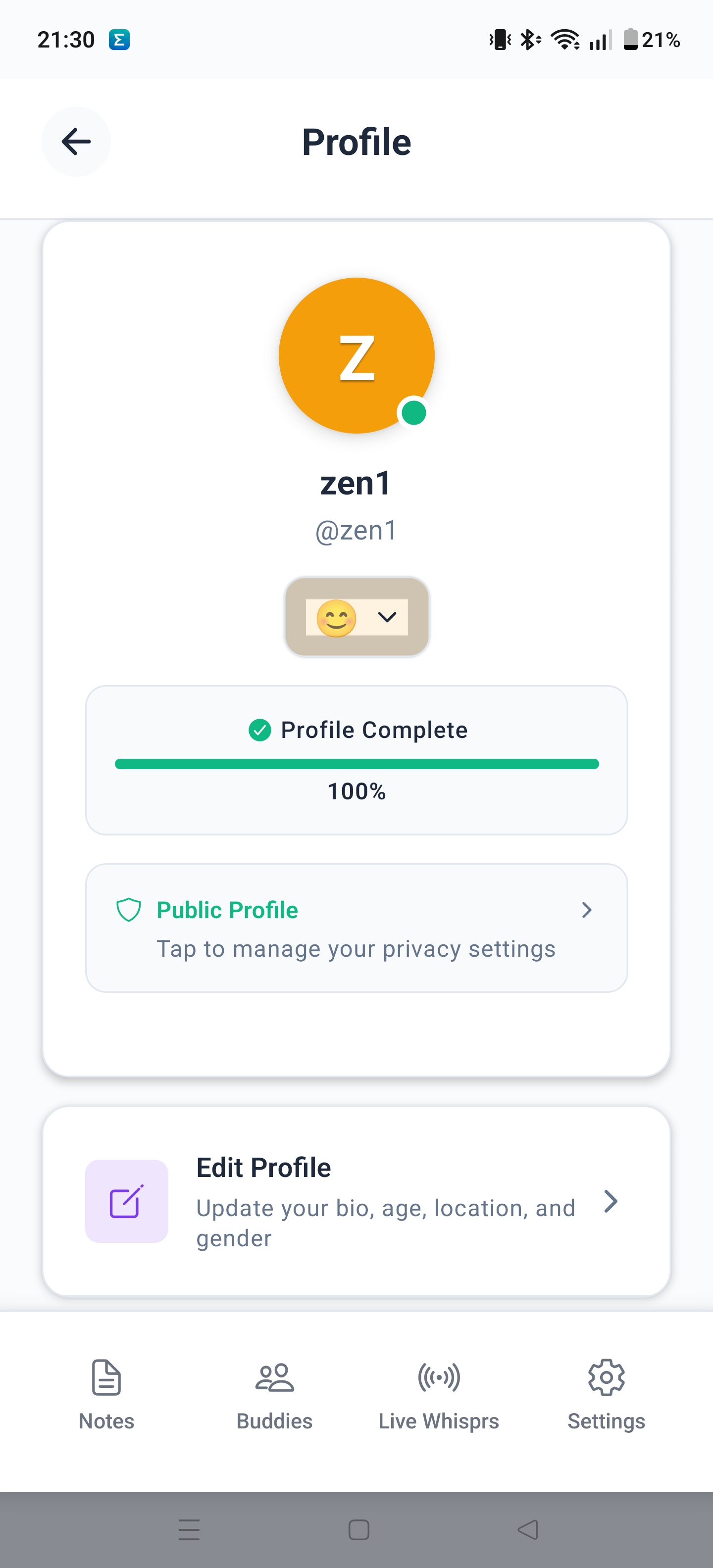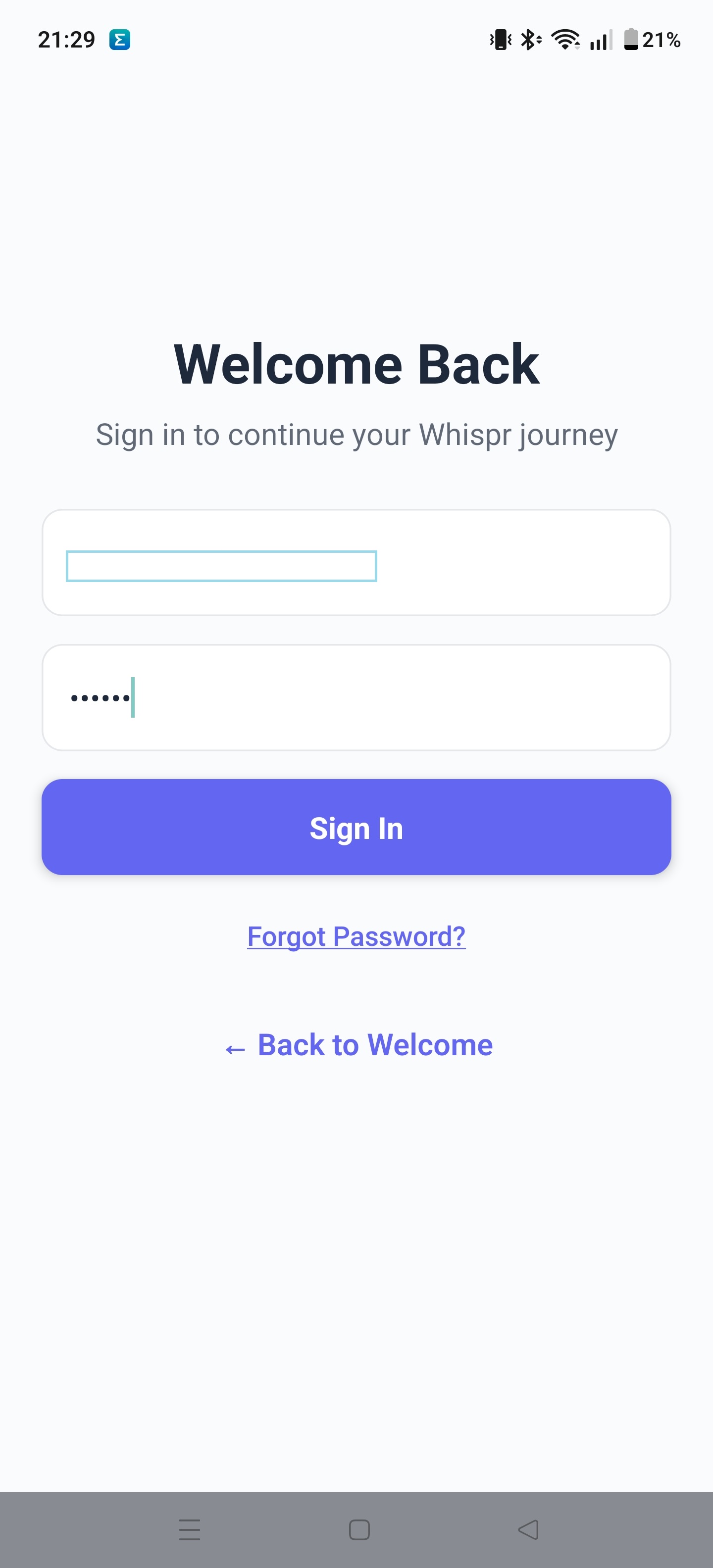 Connect with your Whispr Buddy and have genuine, pressure-free conversations.